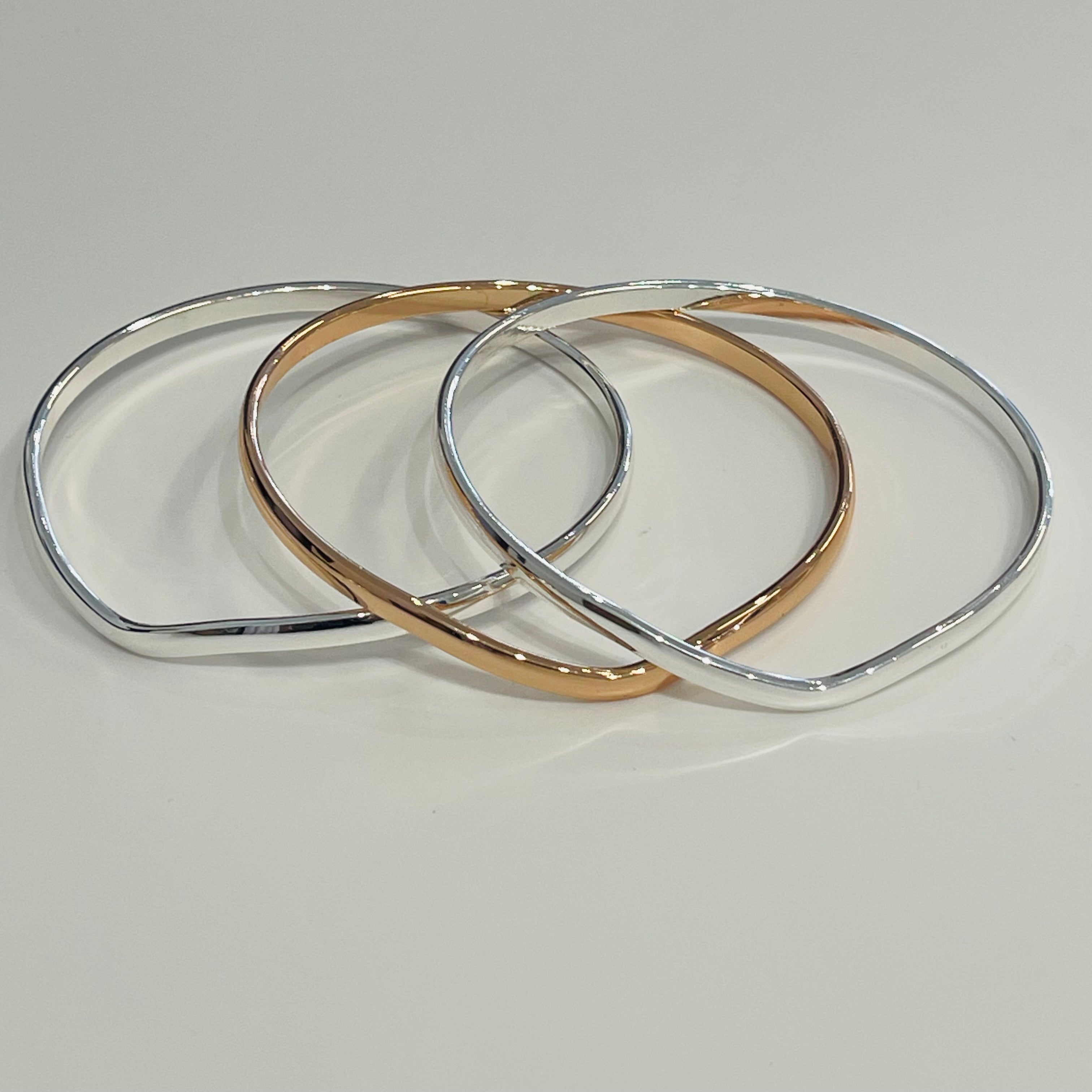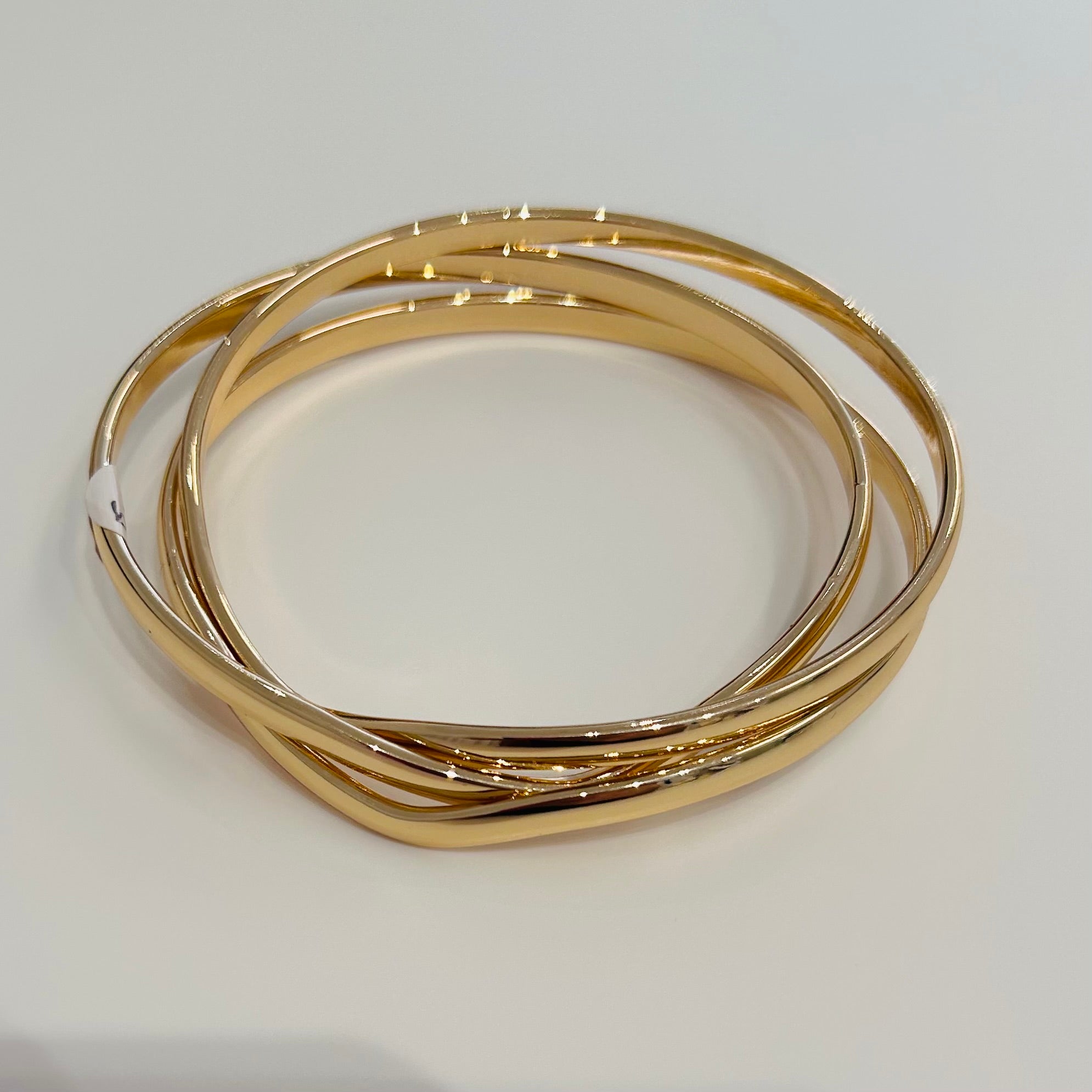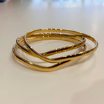 This elegant nesting set features three gold bracelets, each designed with a subtle V-shaped detail for a touch of modern sophistication. With a diameter of 11 cm, these bracelets are perfect for stacking together to create a striking layered look, but they can also be worn individually for understated elegance. Versatile and stylish, this set is a must-have addition to your jewellery collection.