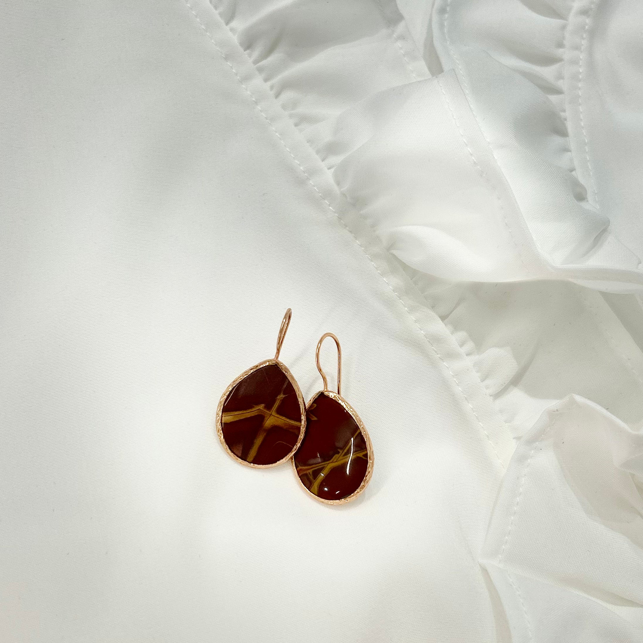 Red Jasper Drop Earrings - Rose Gold