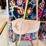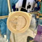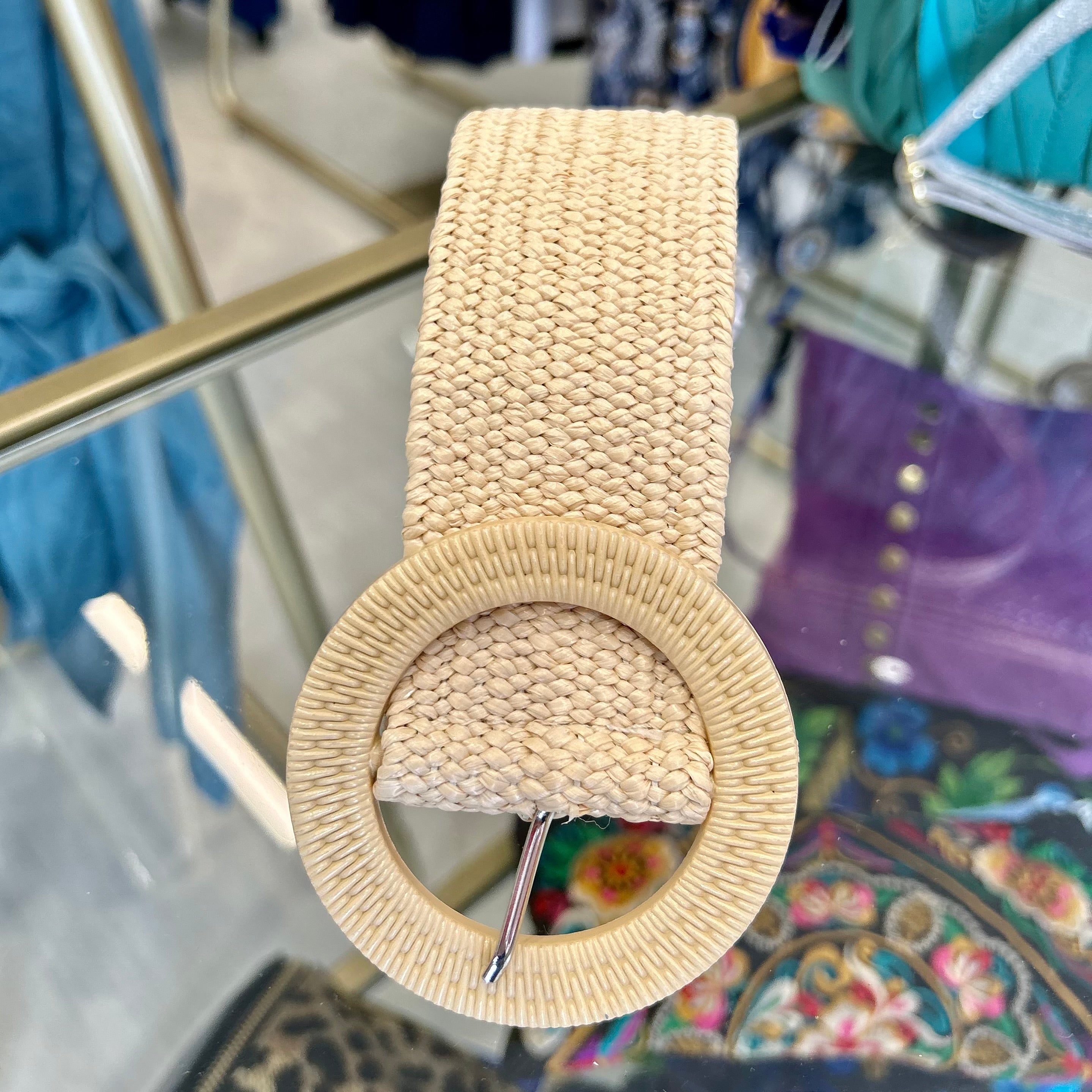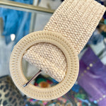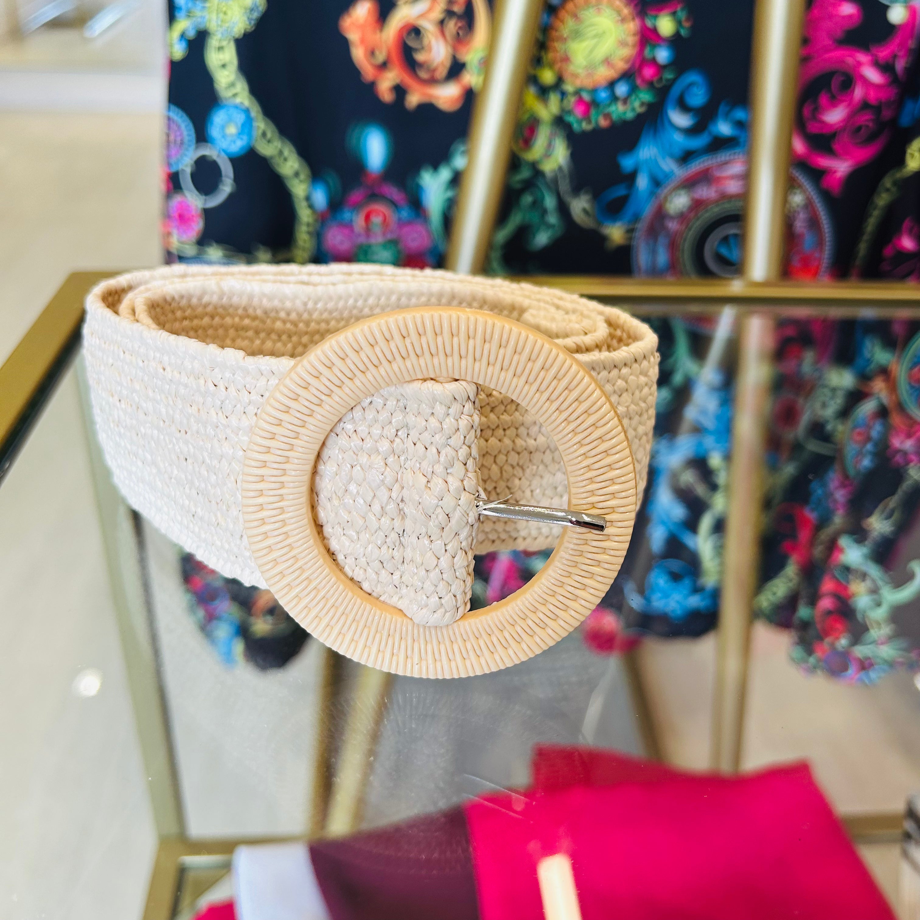 Introducing our Cream Elegance Stretch Belt, featuring a matching cream belt buckle.
