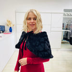 A velvet ribbon tie at the front adds a touch of vintage charm while keeping the wrap comfortably in place. Whether you’re dressing up for an evening event or adding a stylish layer to your day wear, this wrap evokes old Hollywood elegance with a modern twist, that never goes out of style.