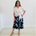 Mosaic blue, midi length, stretch, a-line skirt,with white bamboo, short sleeve, wave sleeve, scoop neckline, fitted top.