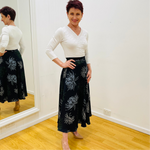 Our French Navy Floral Flared Skirt swishes and swirls are you walk, coupled with the fitted waistband to highlight the natural slimness of the waist and you have an ensemble that is 'look twice' feminine, stylish and beautiful.