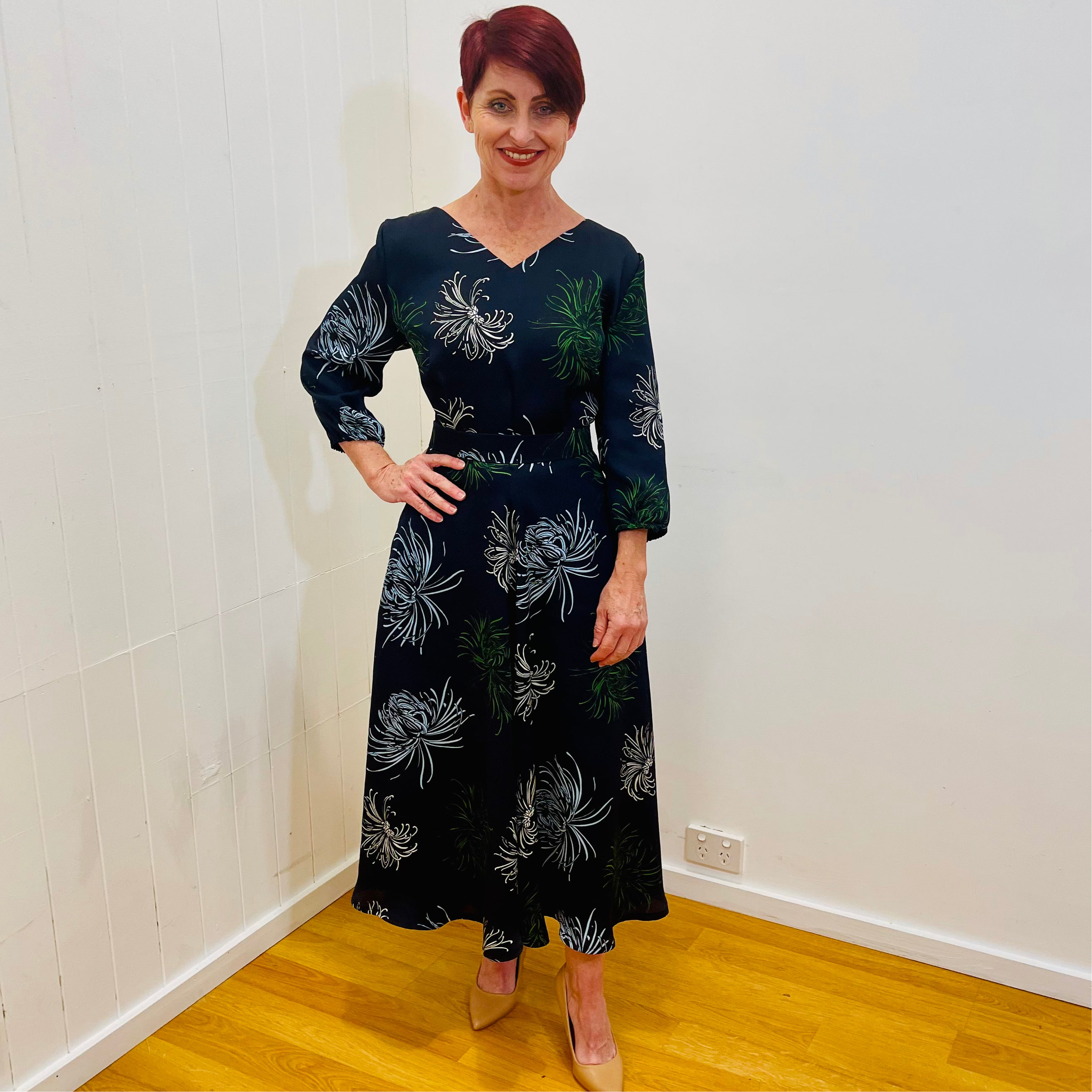 French Navy Floral Print fabric composition: polyester, with polyester lining, centre back zipper and opening