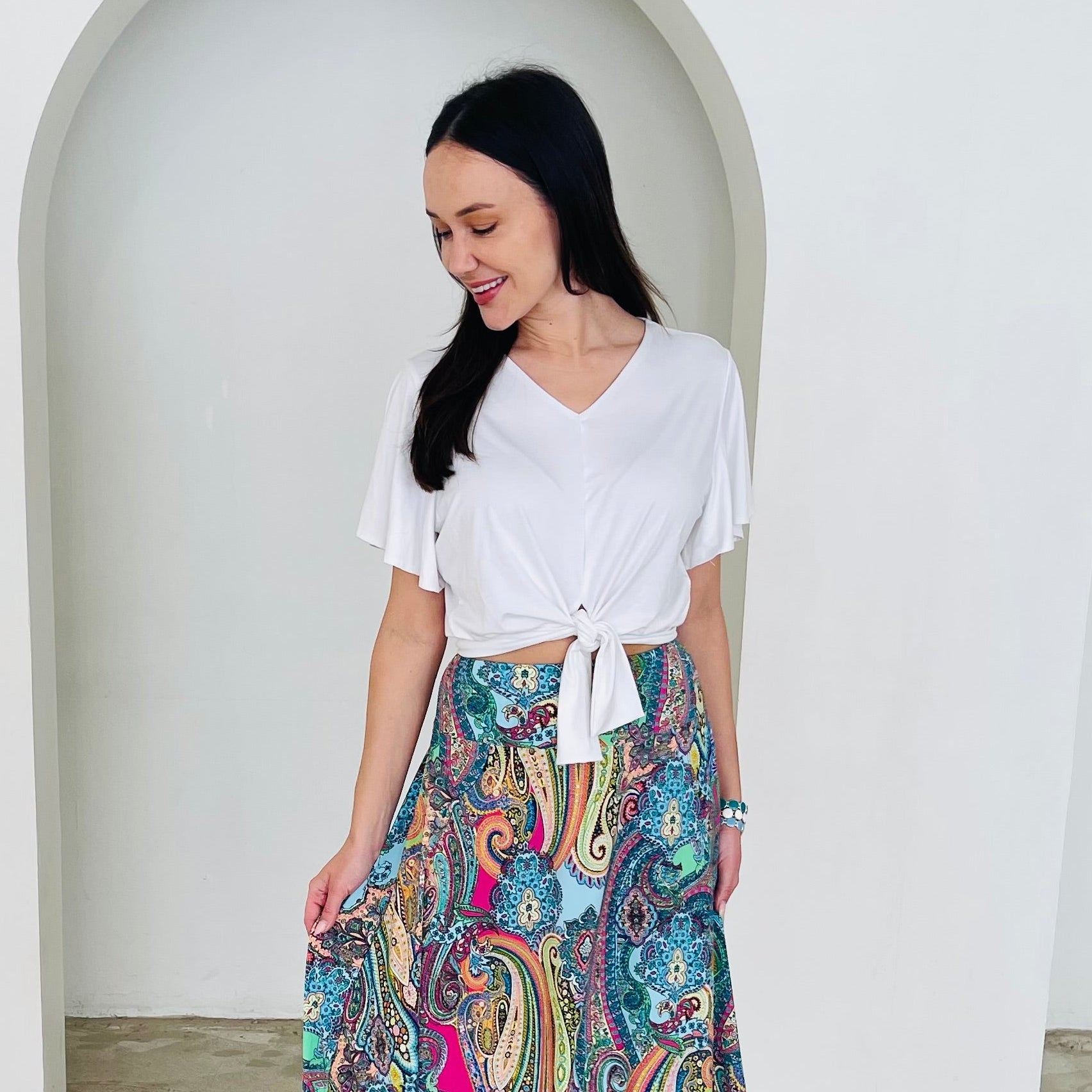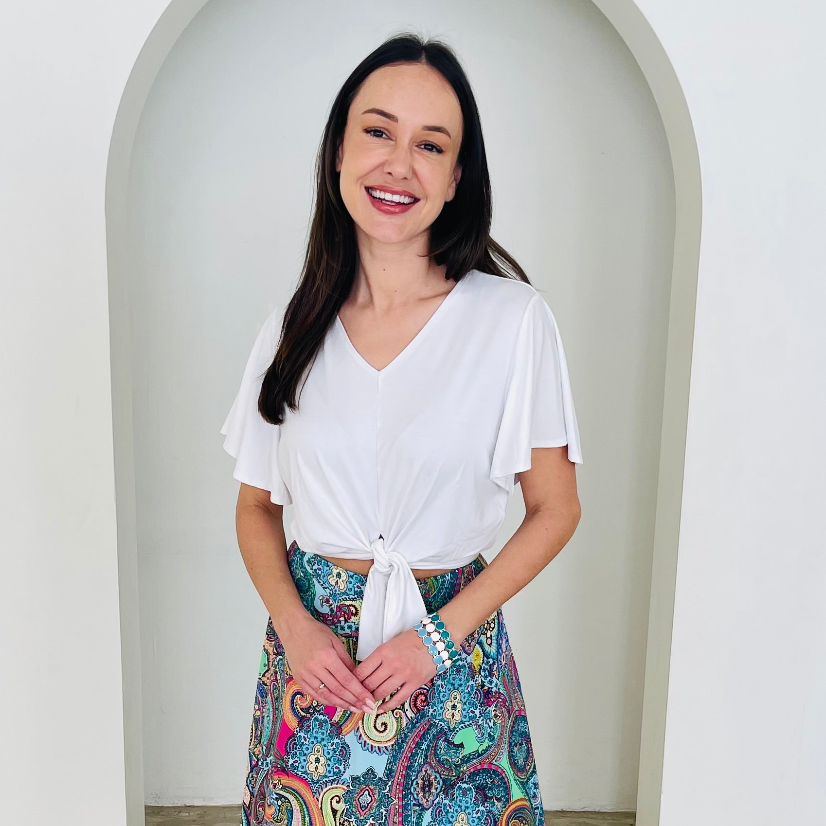 Meet the Harpo Top — a playful new twist on our much-loved Harper design. Cropped to sit at the waist with ties that create a flattering finish, this style is shorter, fresher, and a little more fun — perfect for pairing with high-waisted skirts or pants.