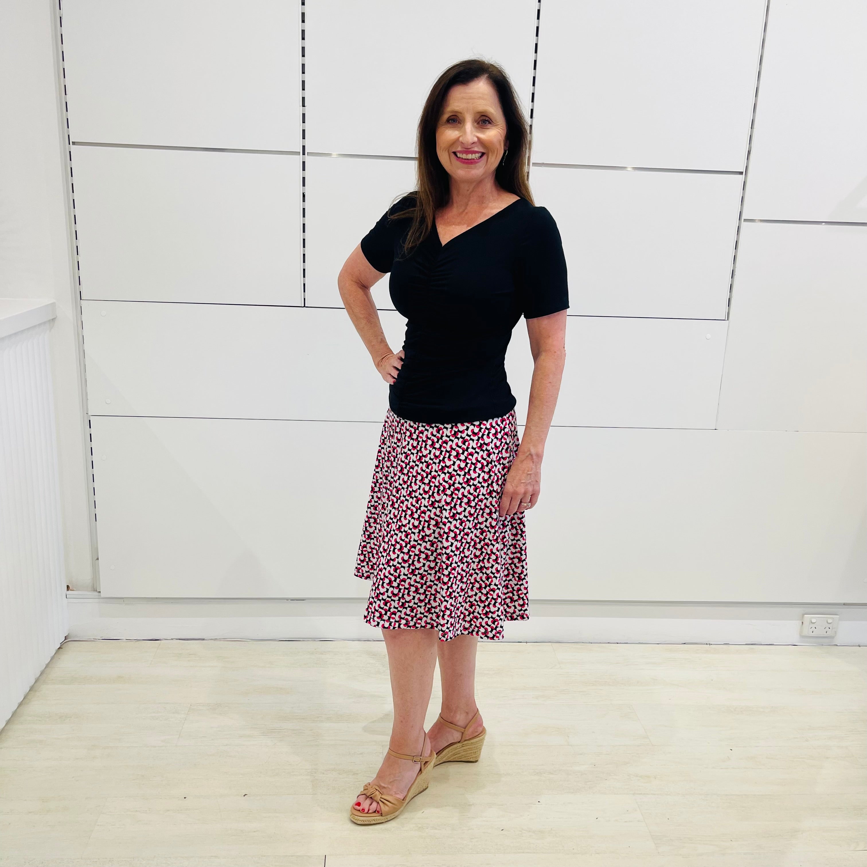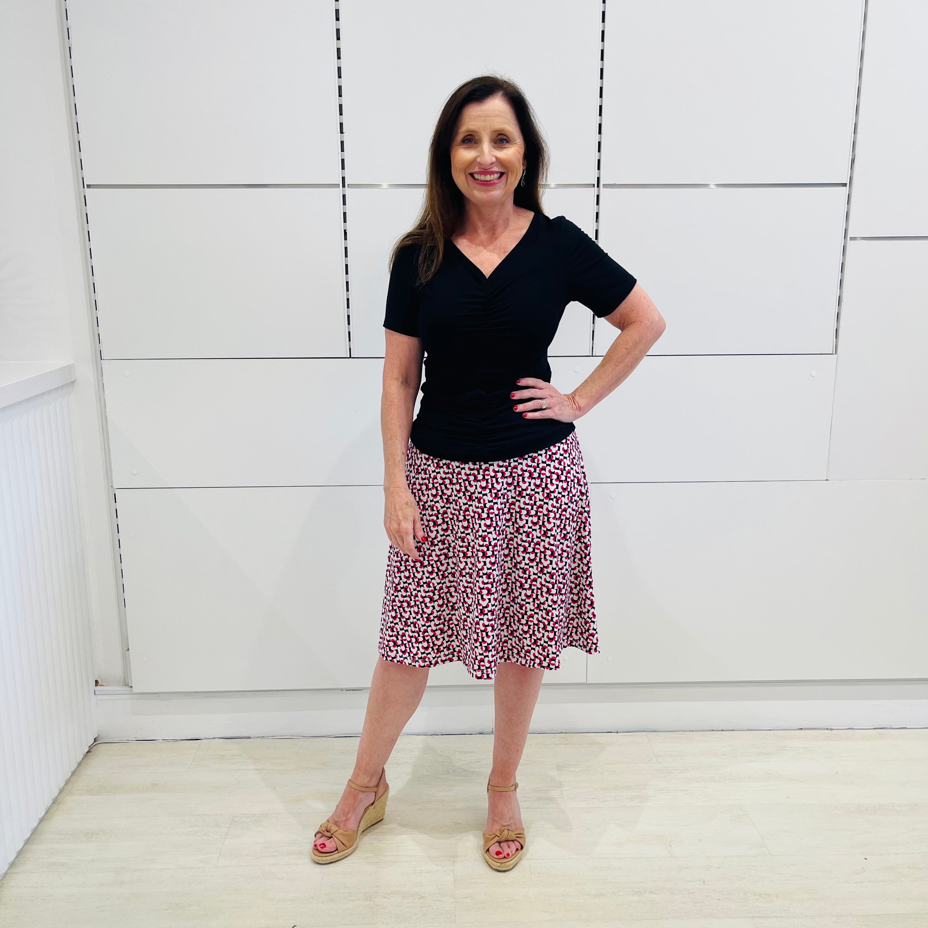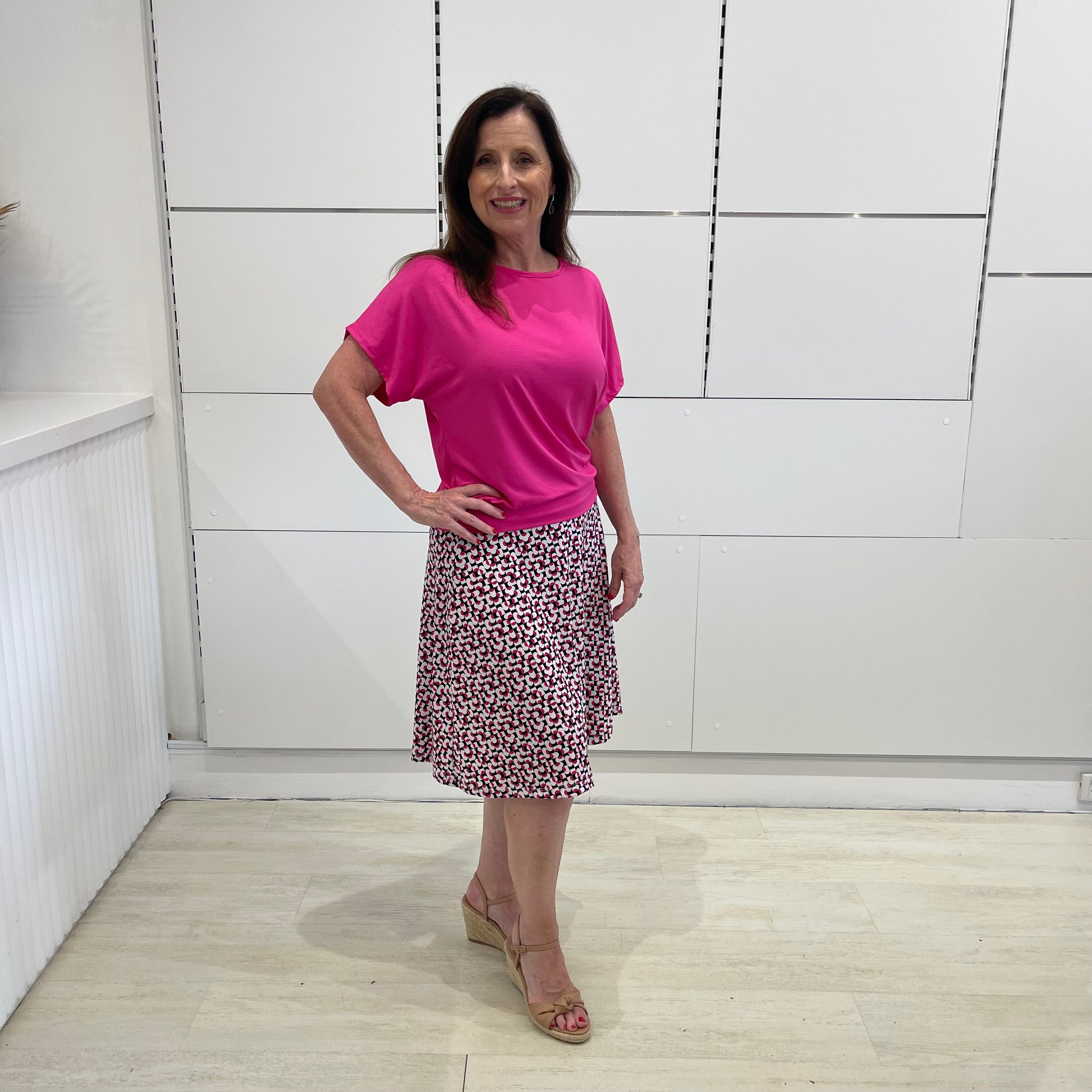 Add a pop of playful  fun to your wardrobe with the Ella Skirt in our vibrant Geo Pink print.