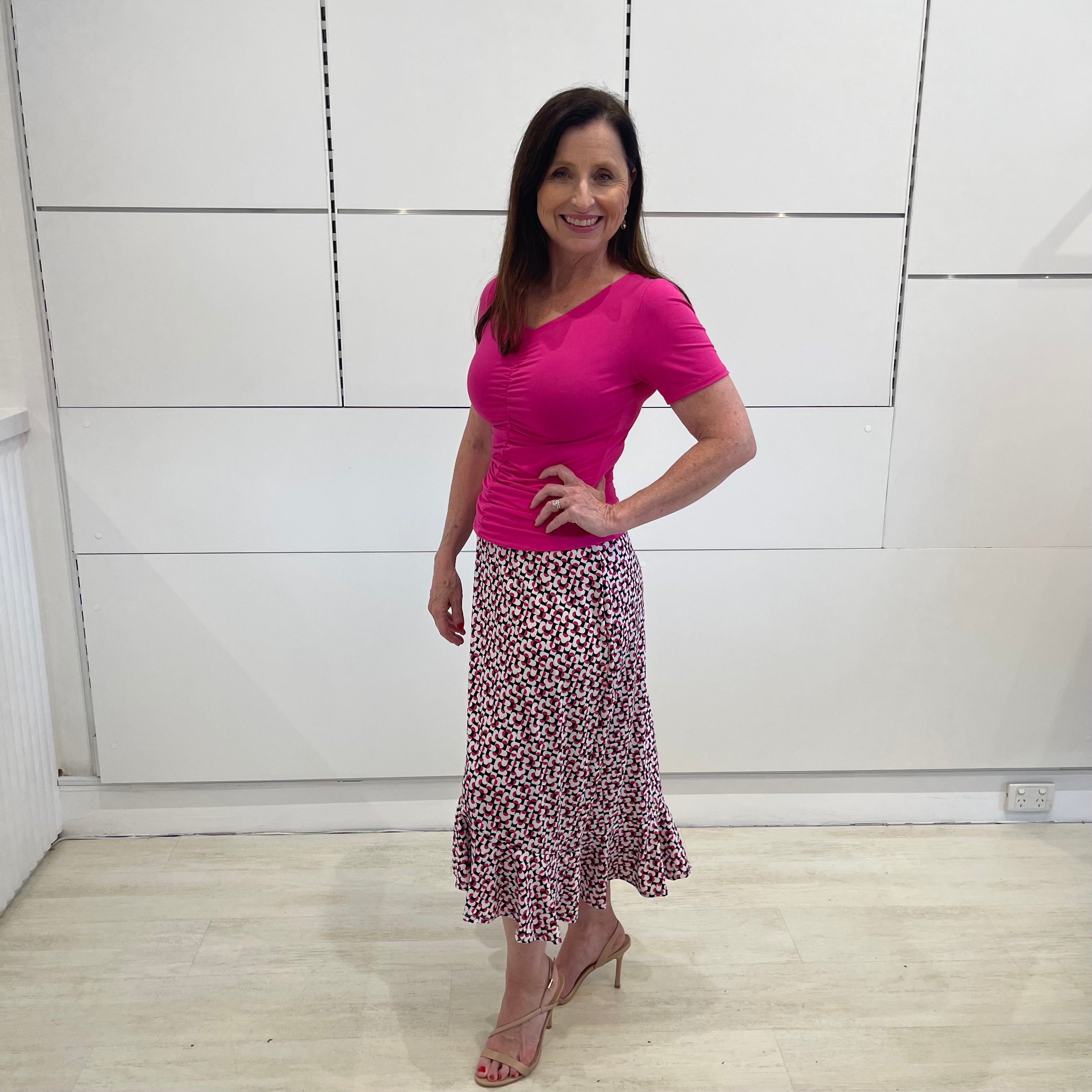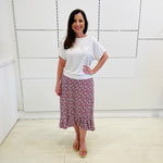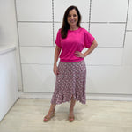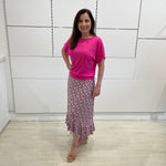 Rachel Ruffle Skirt in Geo Pink so fun and feminine.