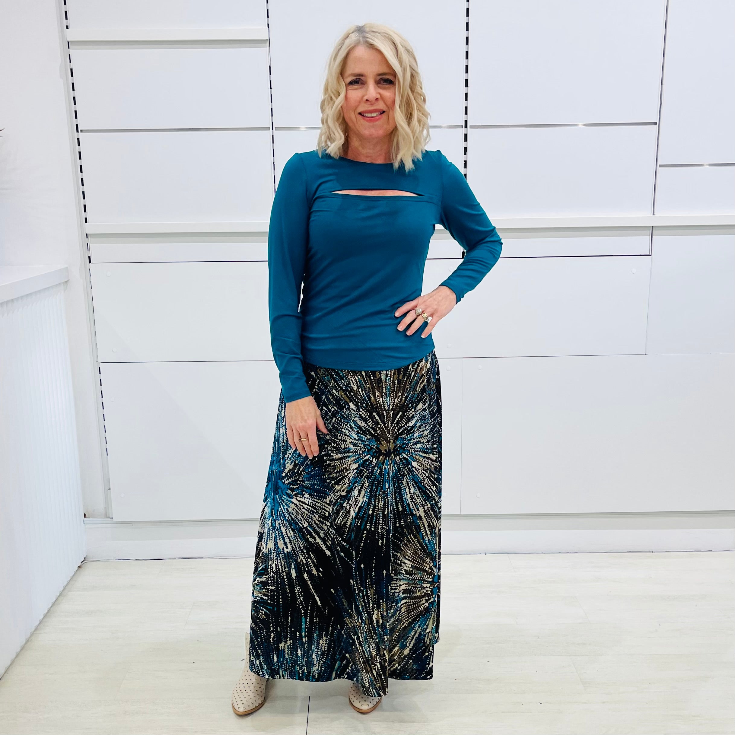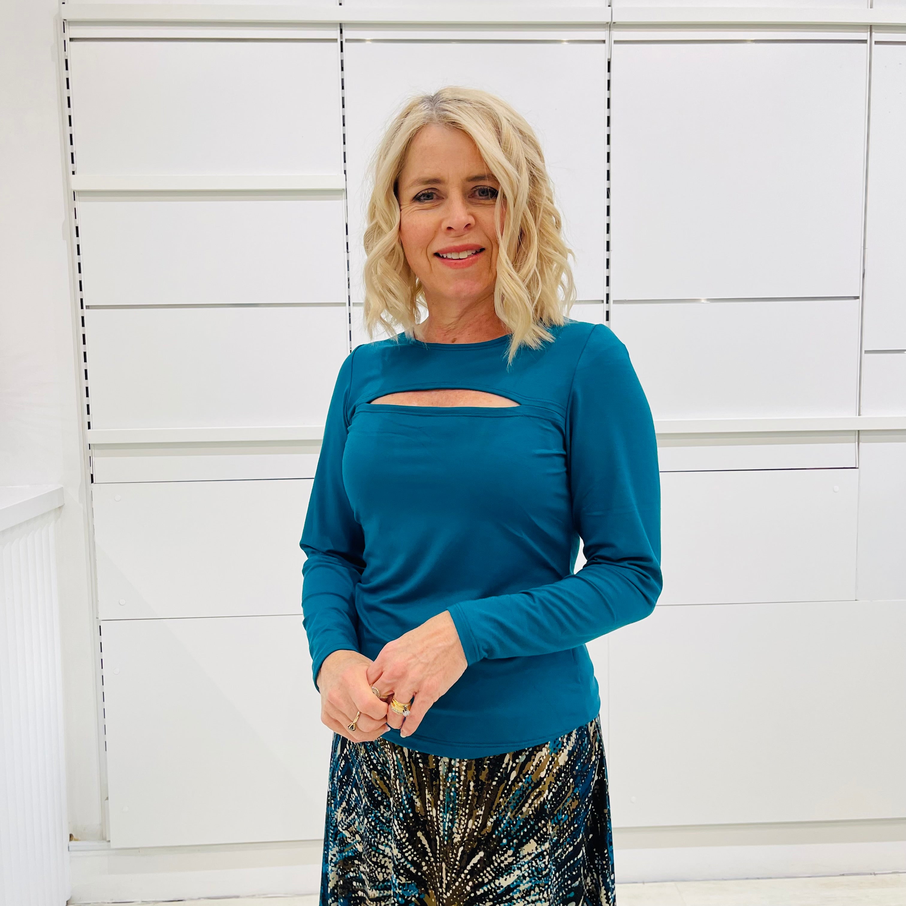 The rich teal hue flatters all skin tones, while the gentle stretch ensures all-day comfort.