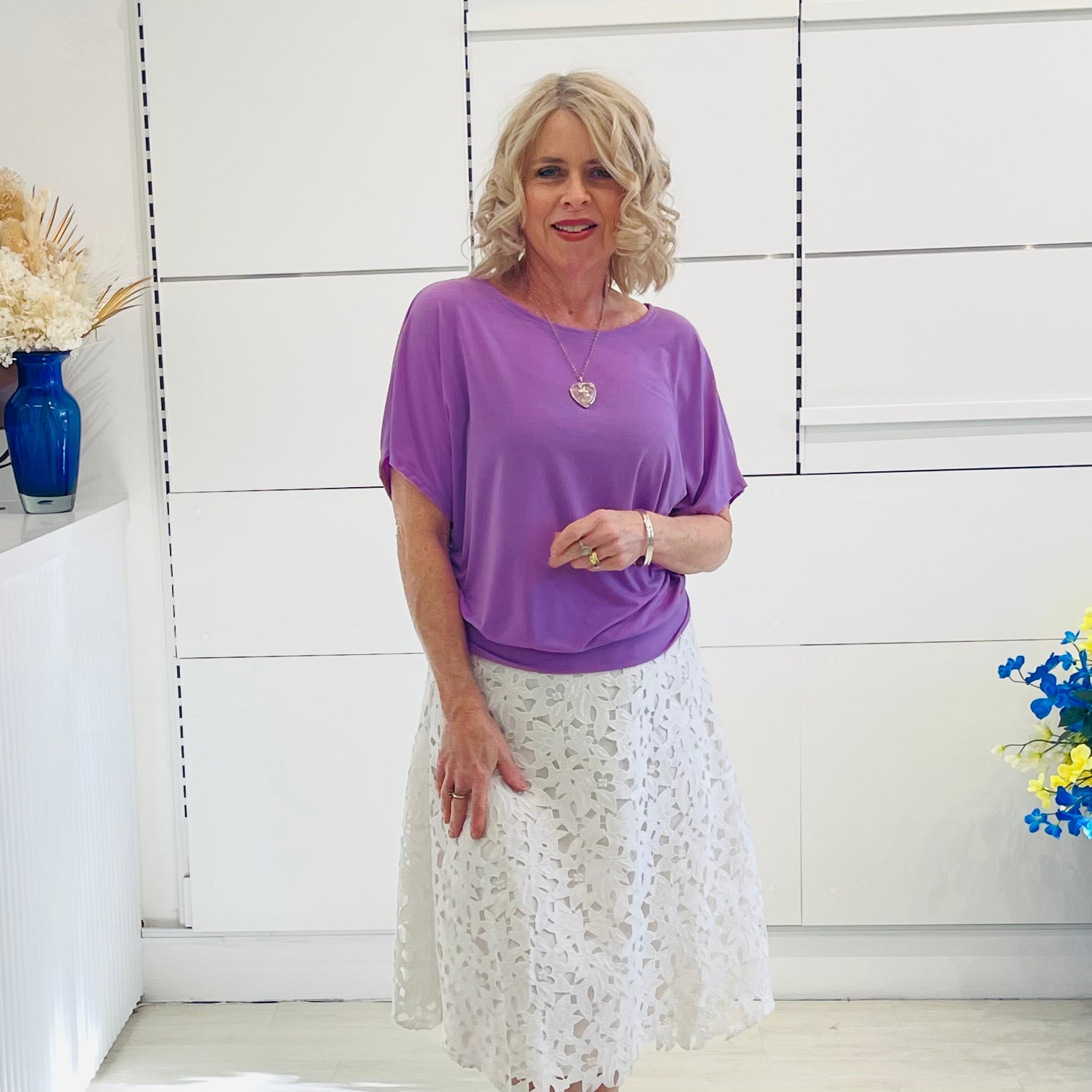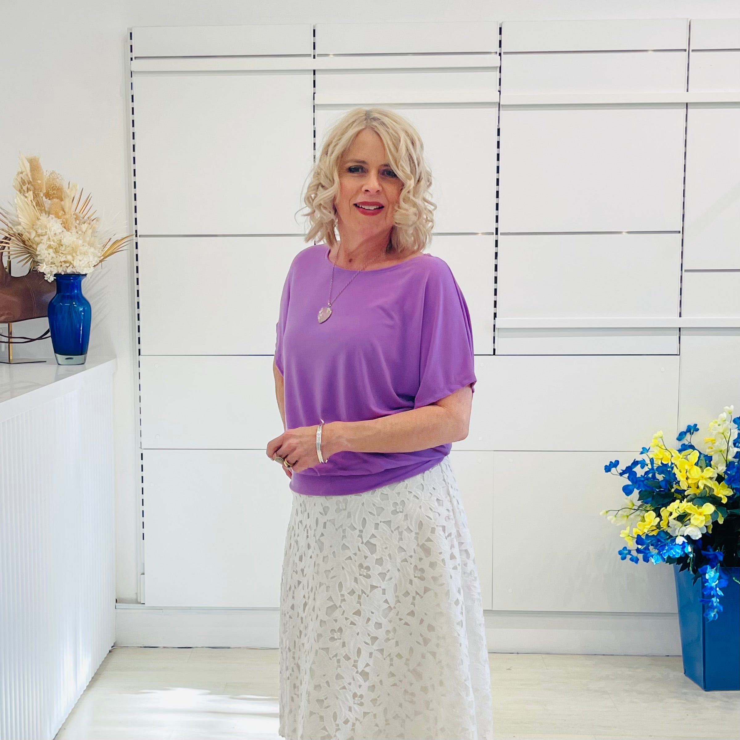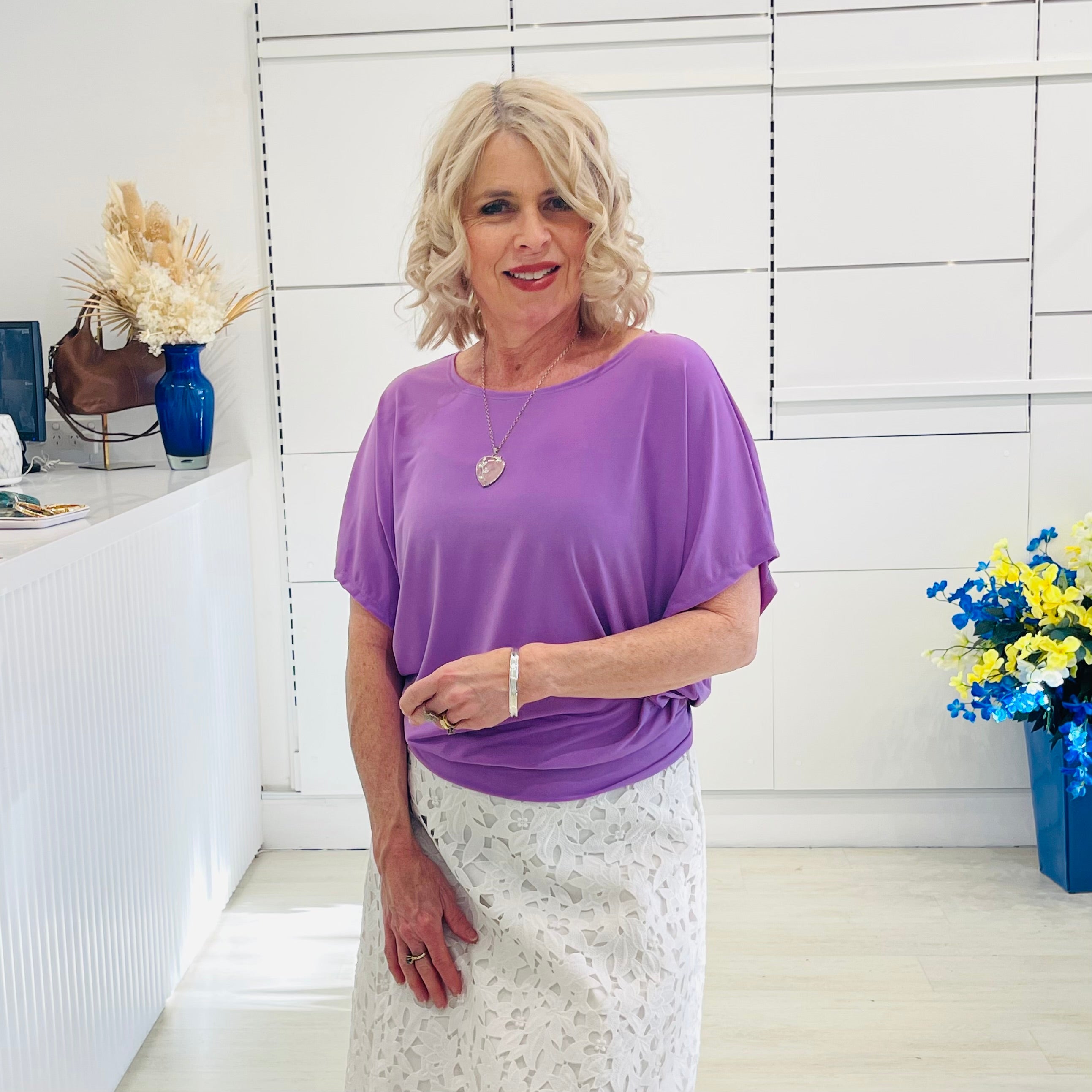 Fresh, feminine, and full of charm—the Summer Gracie Top in Lilac is the perfect way to embrace colour this season. The soft purple hue brings a touch of playfulness while keeping your look sophisticated and wearable. Its relaxed cut skims beautifully without clinging, making it a flattering choice for every shape. Pair it with neutrals for a chic statement or layer it with prints to really let your style shine.