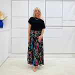 Black, relaxed fit, loose line, off the shoulder, asymmetrical neckline top. Made in Australia.