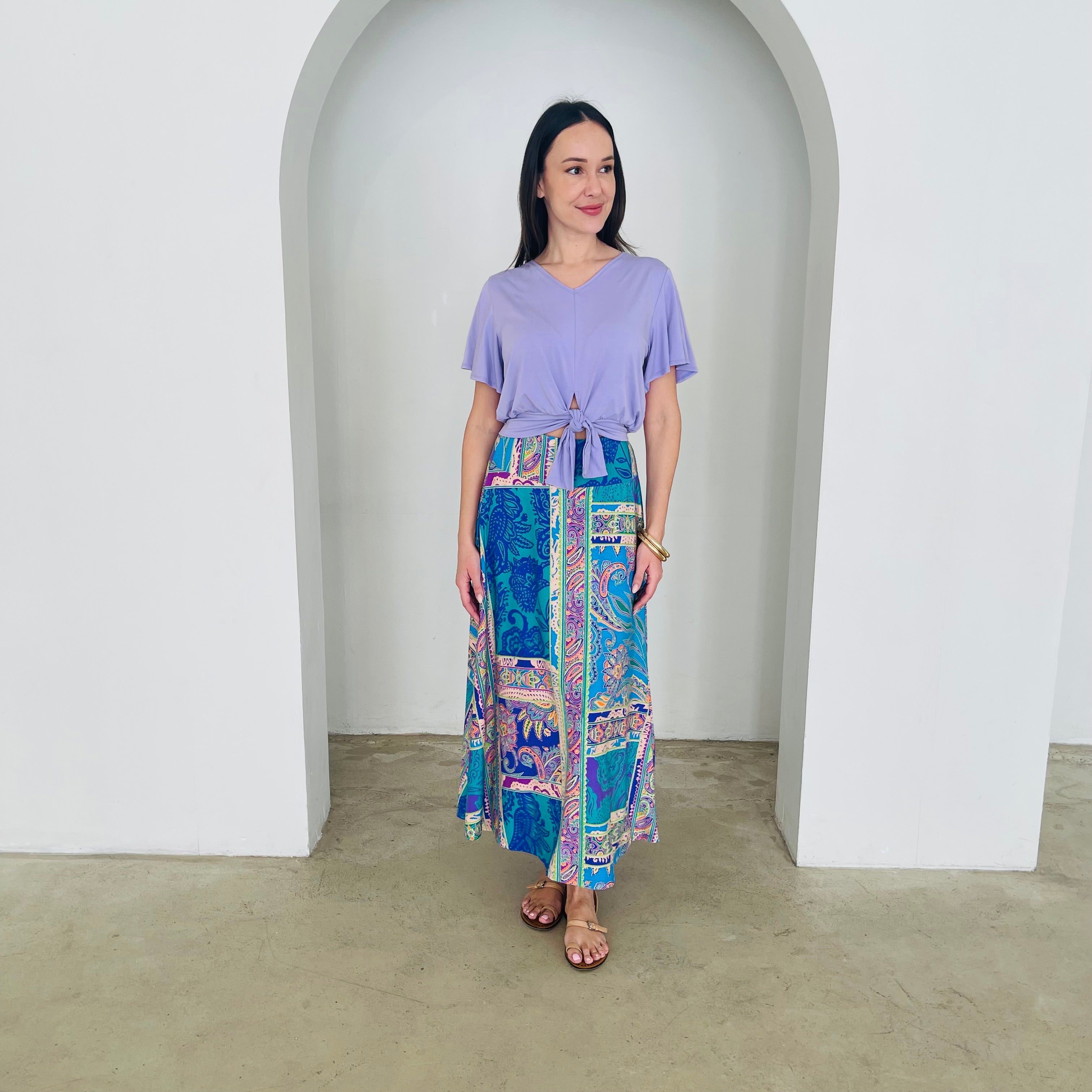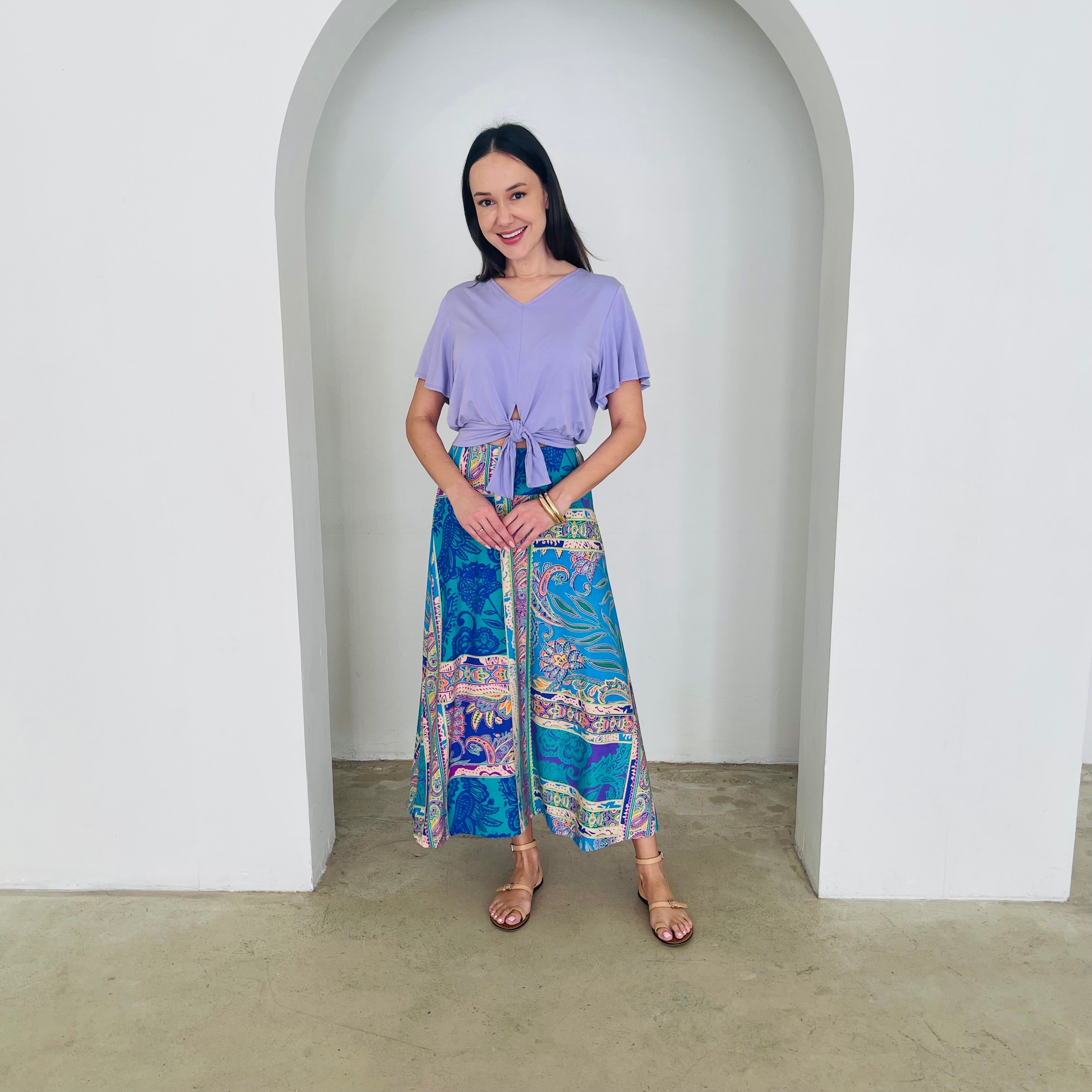 The flowing length, detailed bold print, and flattering waistband combine to create a skirt that’s both relaxed and refined.