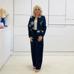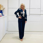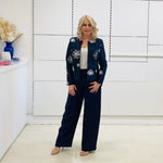 Luxury Navy Silk Embroidered Jacket- a Statement Jacket for a Statement Lady