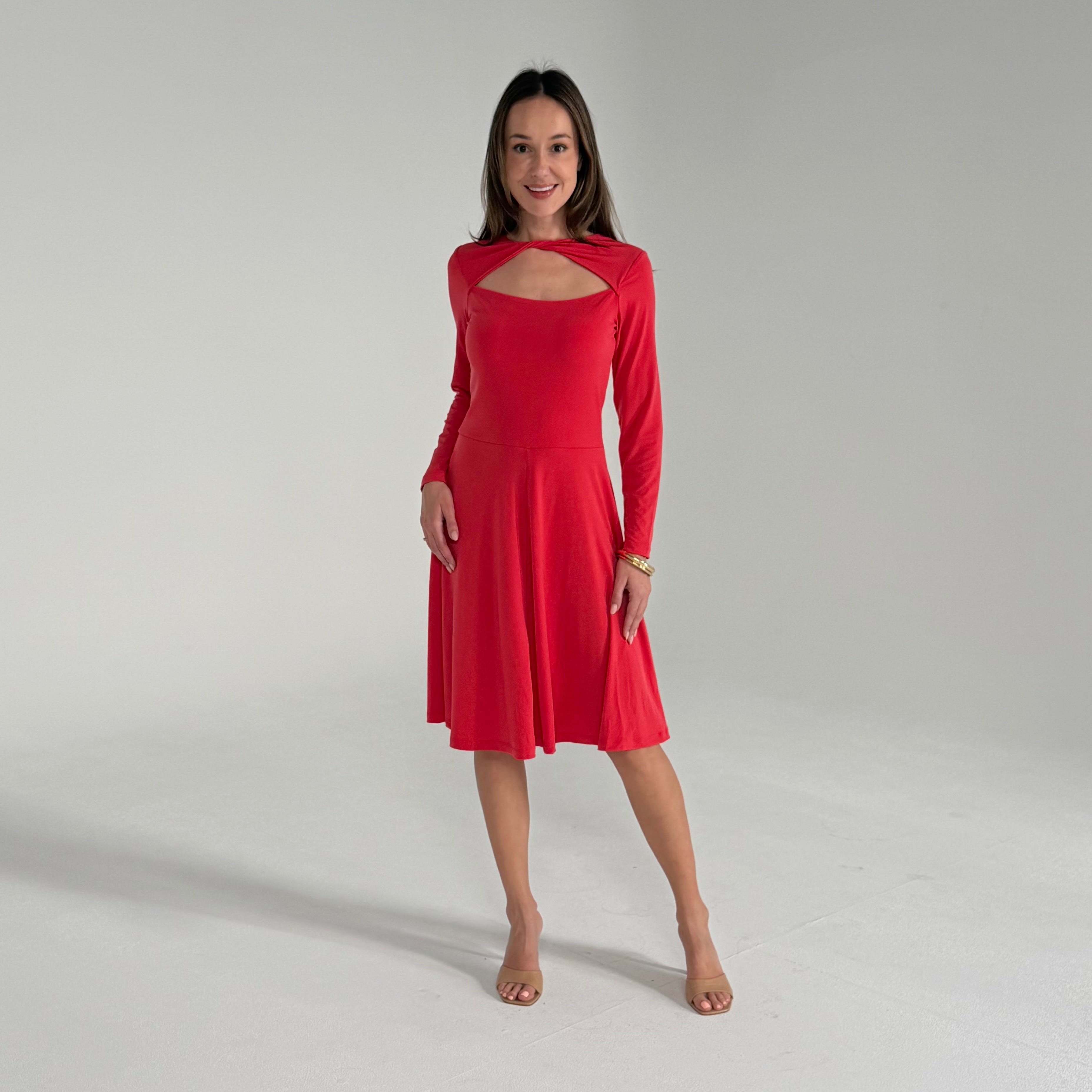 Penelope Dress- Watermelon - A confident silhouette finished with a striking neckline detail