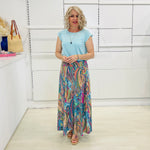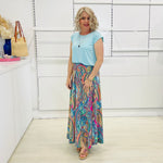 Make a statement in the Rainbow Rhapsody Maxi Skirt.